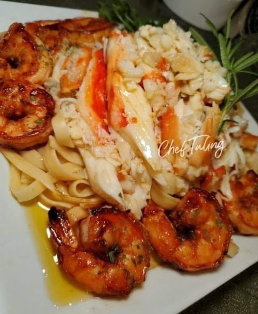 - Stir the shrimp to coat in the sauce and serve on top of the pasta. Covered with Parmesan cheese,