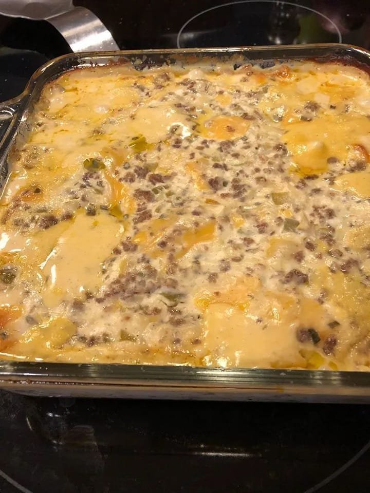 - Pour the mixture into a 9-inch baking dish and spread it out evenly.