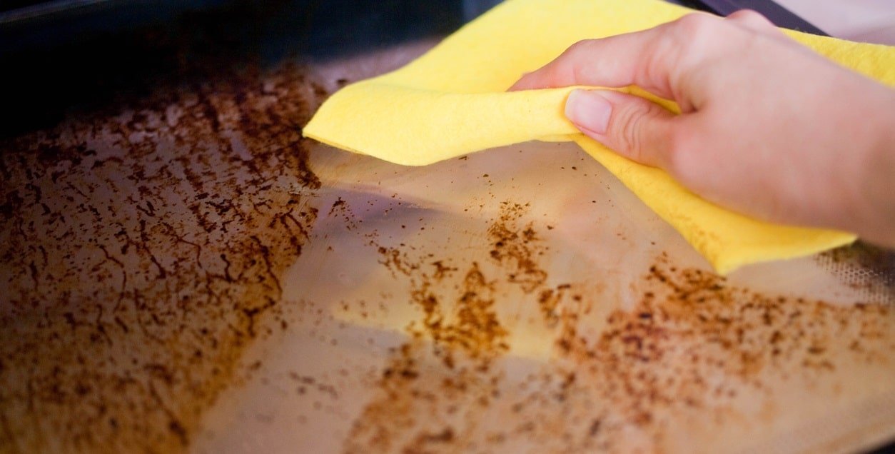 - Wipe down the exterior of the oven to remove any cleaning solution residue.
