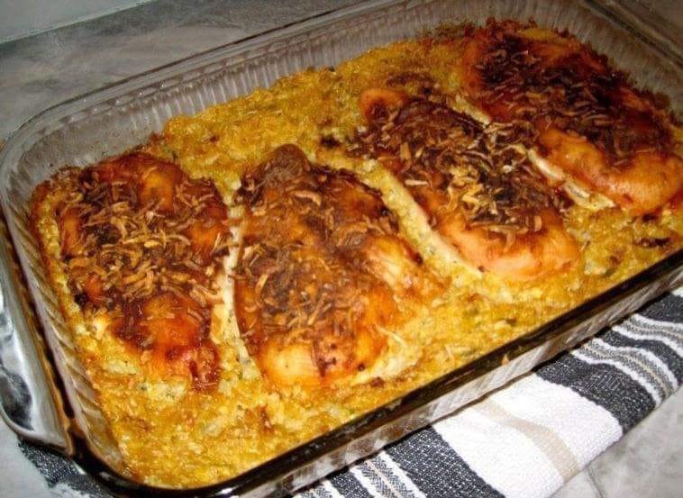 Sprinkle Lipton onion soup evenly on top of chicken breasts.