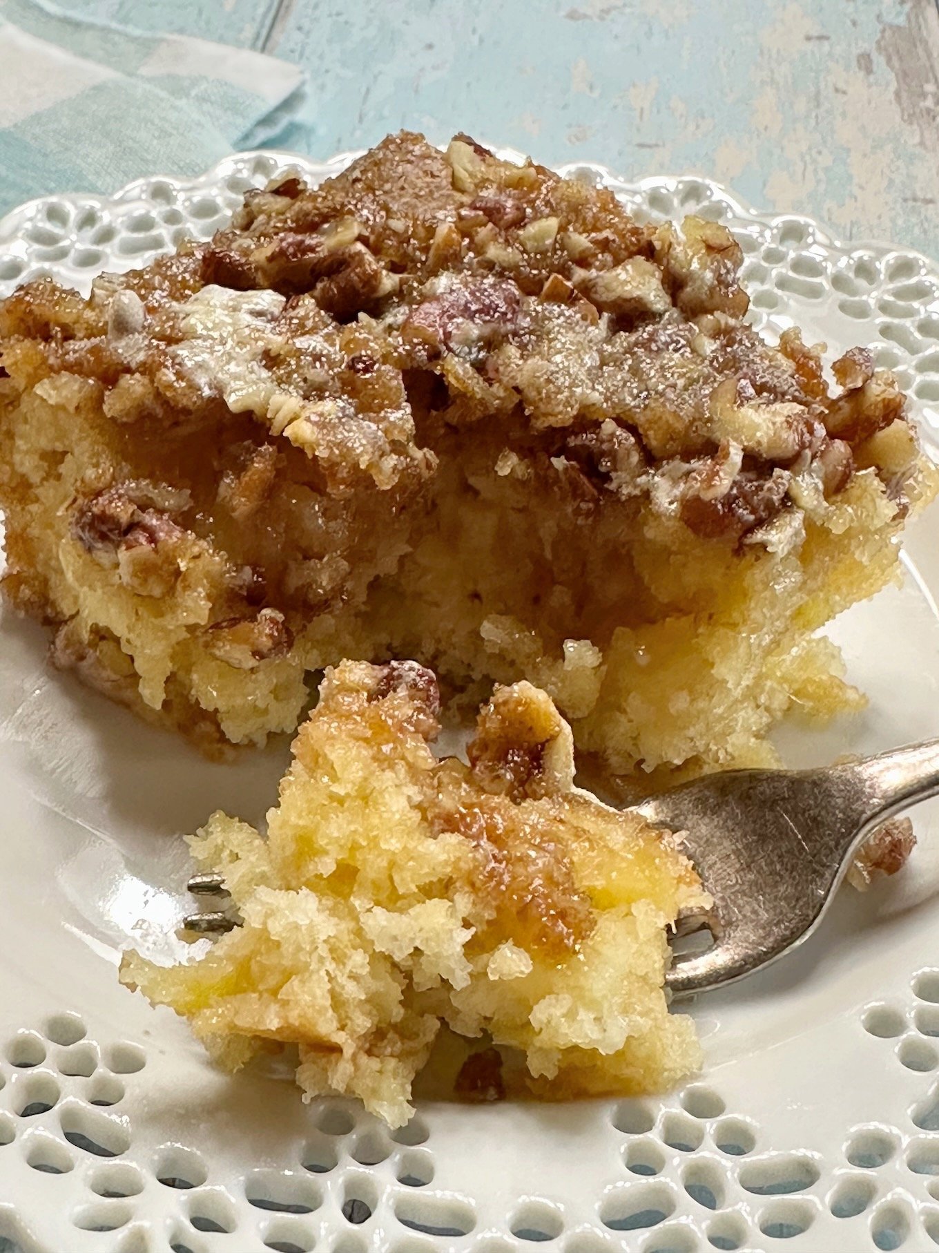 the magnificence of this recipe isn’t solely due to the cake itself. Oh no, there’s much more to it. While the cake is baking, you’ll create a speedy stovetop icing that will be poured over the cake immediately after it’s removed from the oven. It’s made with just four ingredients, and seeps into the cake, further contributing to its moistness. As it gradually sets, it forms a crackly, crispy-coated top layer that brings everything together.
