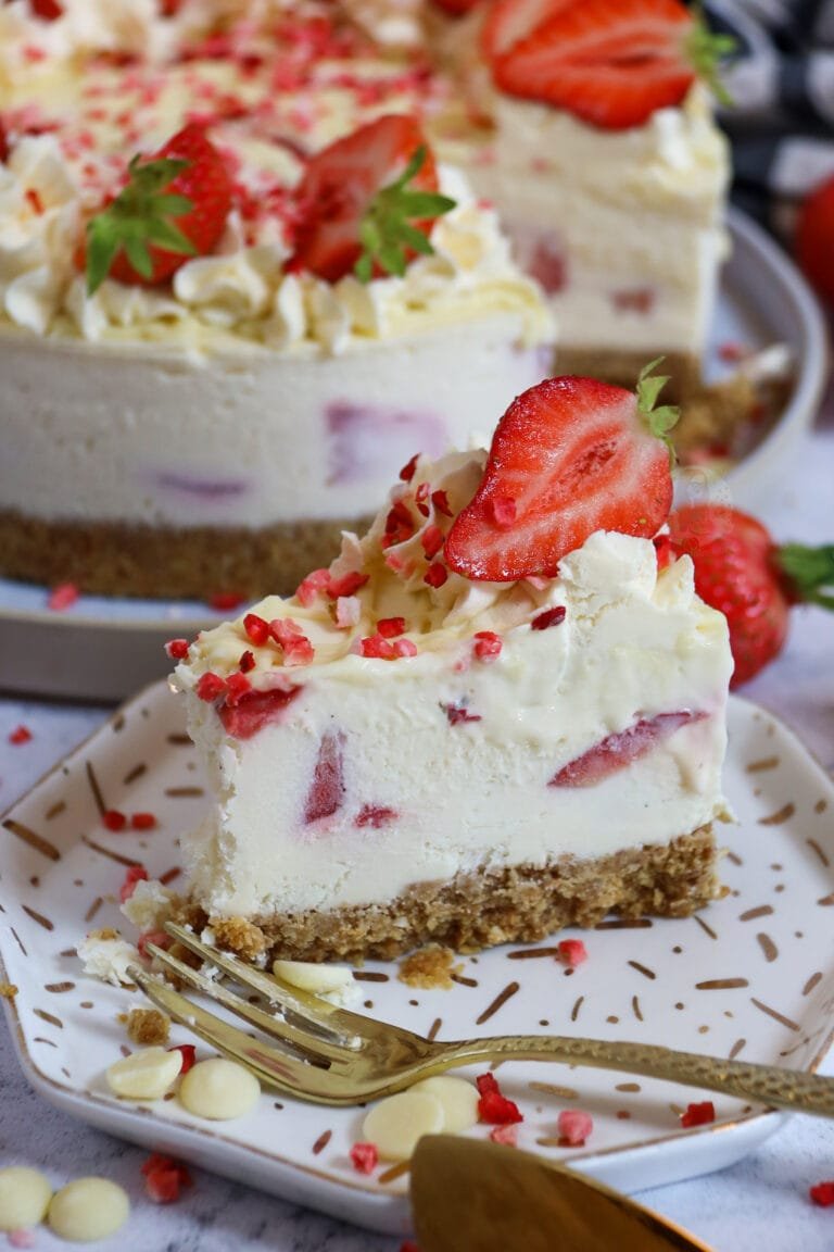 - I then add some fresh strawberries to the top (6 usually) and sprinkle on some white chocolate sprinkles and the freeze dried strawberries
