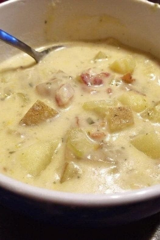 INGREDIENTS: 1 package (12 oz) bacon 1 1/2 cups chopped onion 6 cups chicken broth (from two 32-oz cartons) 2 lb baking potatoes, peeled, cubed 2/3 cup butter 3/4 cup …