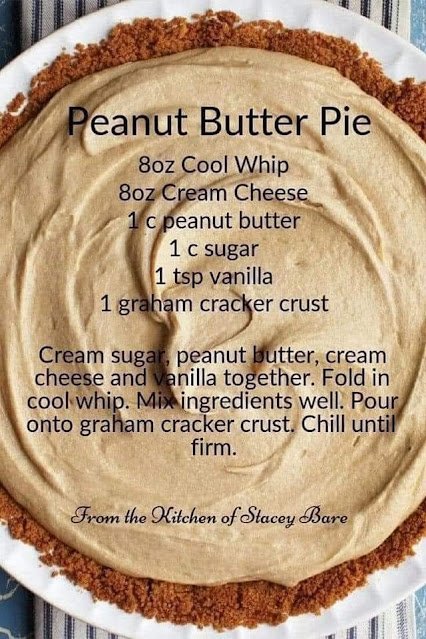 *Ingredients: °Pre-made graham cracker crust. °1 c creamy peanut butter °1 package of 8 ounces soft cream cheese. °1 cup powdered sugar °8 oz cold shake, let it thaw and …