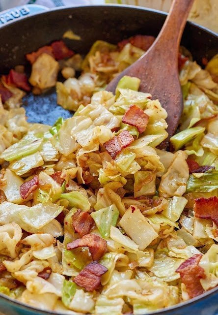 *Ingredients: •6 slices of bacon. •A large head of cabbage, I removed the core and cut it into strips. •2 minced garlic cloves. •1 large onion, cut into cubes. •1 …